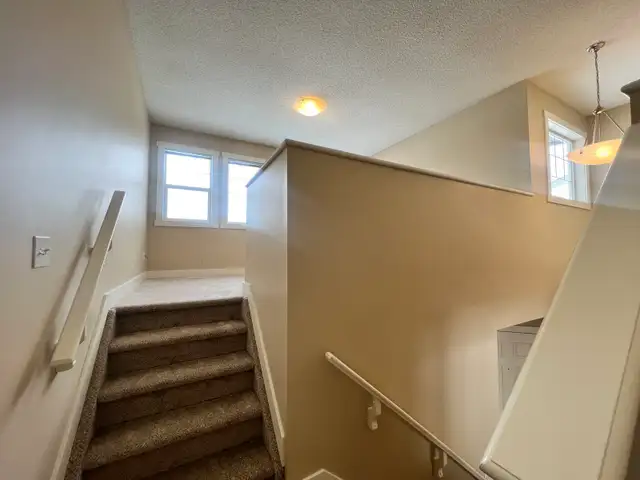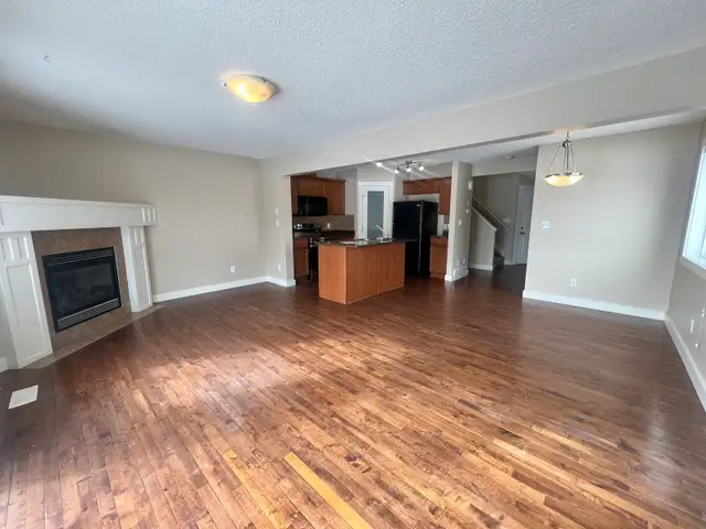 Discover this 3-bedroom home tucked away in a quiet Tamarack area, perfectly situated on a rare pie-shaped lot that offers unparalleled privacy with no rear neighbours. From the moment you arrive, you'll appreciate the large fully landscaped yard. The expansive backyard is a dream ideal for gardening, play, or hosting gatherings. Inside, the main floor welcomes you with a bright, open-concept layout featuring a stylish kitchen, spacious dining area, and a cozy living room with a gas fireplace.. perfect for relaxing or entertaining. A convenient half bath completes the main level. Upstairs, you'll find a large bonus room ideal for family movie nights, a primary suite with a 4-piece ensuite, plus two additional well-sized bedrooms and a 4-piece main bath. Generous windows throughout flood the home with natural light. Whether you're a growing family or savvy investor, this rare offering combines location, lot size, and layout for exceptional value.