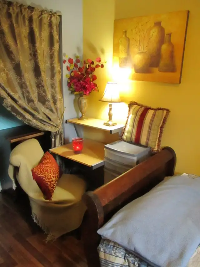 No need to worry about lugging furniture, or having to buy it. I supply everything! And it's nice too, unlike most of the dumps you find on here! All is supplied, bedding, dishes, cookware, towels etc... Why pay the same price some where else that has no furniture? insane! You are not just stuck in a room either, Enjoy the cozy living room, dinning area etc..