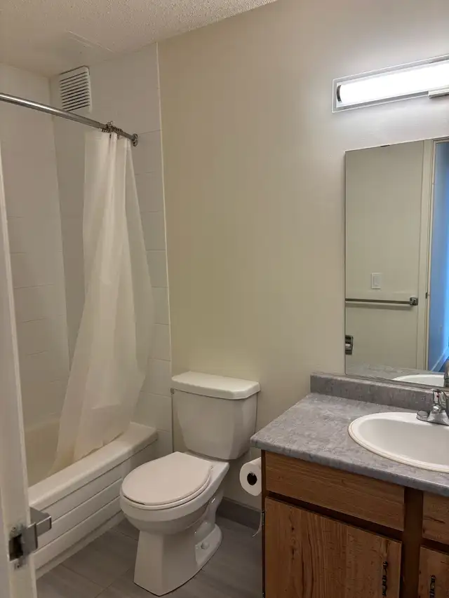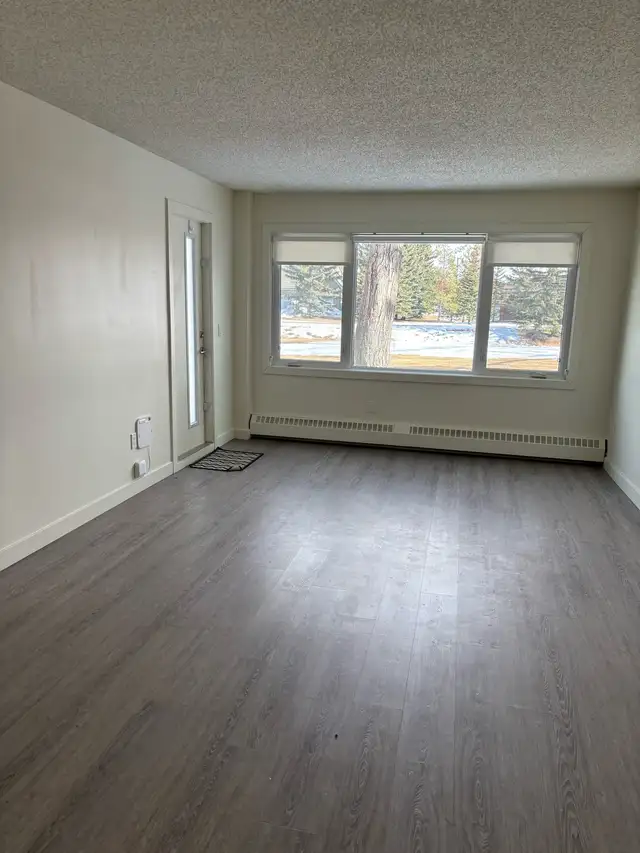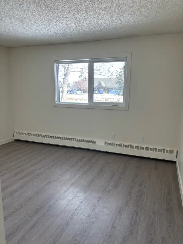 1 BDRM Apartment for rent in Airdrie. Large bedroom, 4pc bath, large storage room, living room and kitchen. Ground floor unit with patio and green space. Lots of light, newer windows with roll down blinds. Very clean. On site laundry vacilities. Pets welcome, $50 month pet fee. Water and heat included in rent.