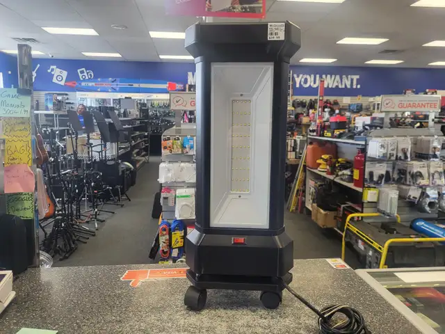 The KODA LED Tower Work Light (LM030377) is a powerful and versatile portable work light designed to brighten large work areas such as garages, workshops, construction sites, and renovation projects. With three adjustable LED light panels producing up to 9,000 lumens, it provides 360° illumination so you can light an entire room or focus light exactly where it's needed.