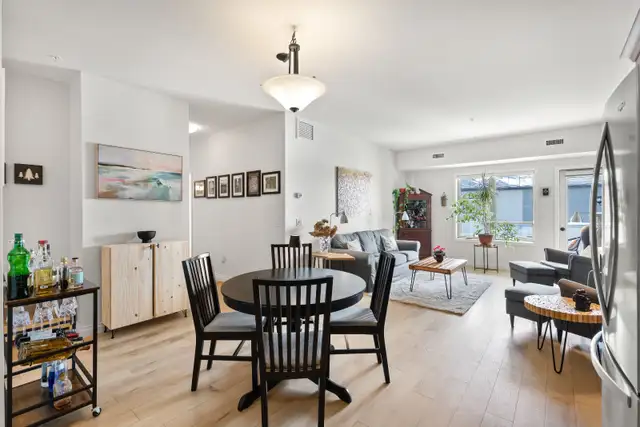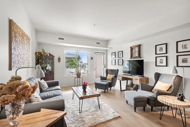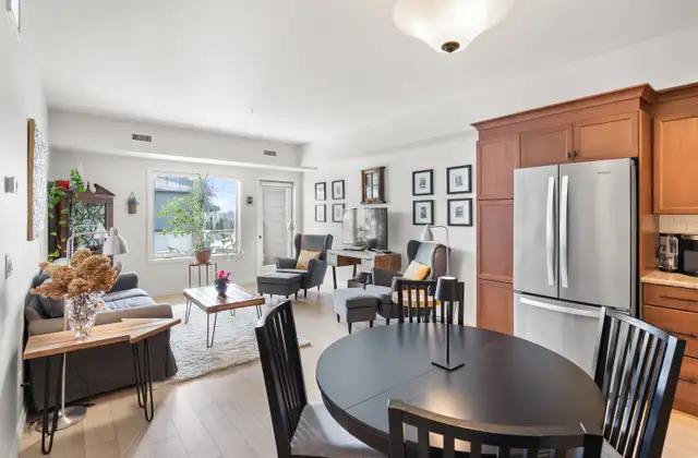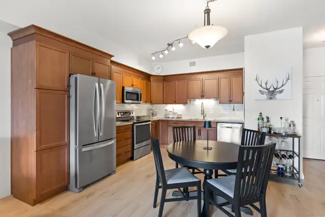 SS Thurs Mar 19th Offers as Received! Welcome to this stunning 3rd floor 2 bedroom den, 2 bathroom condo offering a bright and functional open concept layout. The spacious living room, dining area, and kitchen feature new vinyl plank flooring and create the perfect space for everyday living and entertaining. The kitchen is well designed with stainless steel appliances and ample workspace, while the living room opens to a lovely south-facing balcony with a gas hookup & overlooking green space. Down the hall you'll find a large primary bedroom that comfortably accommodates a king-size suite, complete with a walk-in closet and private ensuite. The second bedroom is generously sized and features a built-in Murphy bed with shelving, making it ideal for guests or flexible use. The den is perfect for a home office and includes a built-in desk with cabinetry. Additional highlights include in-suite laundry, an underground parking spot, and a storage locker. Fantastic building amenities include a party room (many group activities are available), gym, sauna, guest suite, and ample visitor parking. You will love this convenient location close to transit, shopping, and the perimeter. Book your showing today!