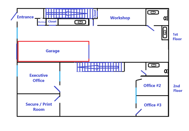 The 2nd floor has 3x private offices with display glass (executive office has an East Facing Window), a large collaborative open workspace, a separate print room (could be built out as a secure office). Additional features include carpeted floors, a robust electrical service, separate climate systems, a security alarm system, and existing furniture can be included or removed. This spacious configuration supports multiple office, workspace, and storage scenarios without the need for major interior restructuring. Please note, Garage image is that of the neighbor for visualization purposes only. More photos on my website or upon request! Don't miss this chance to secure beautiful, functional space in this easily accessible location!