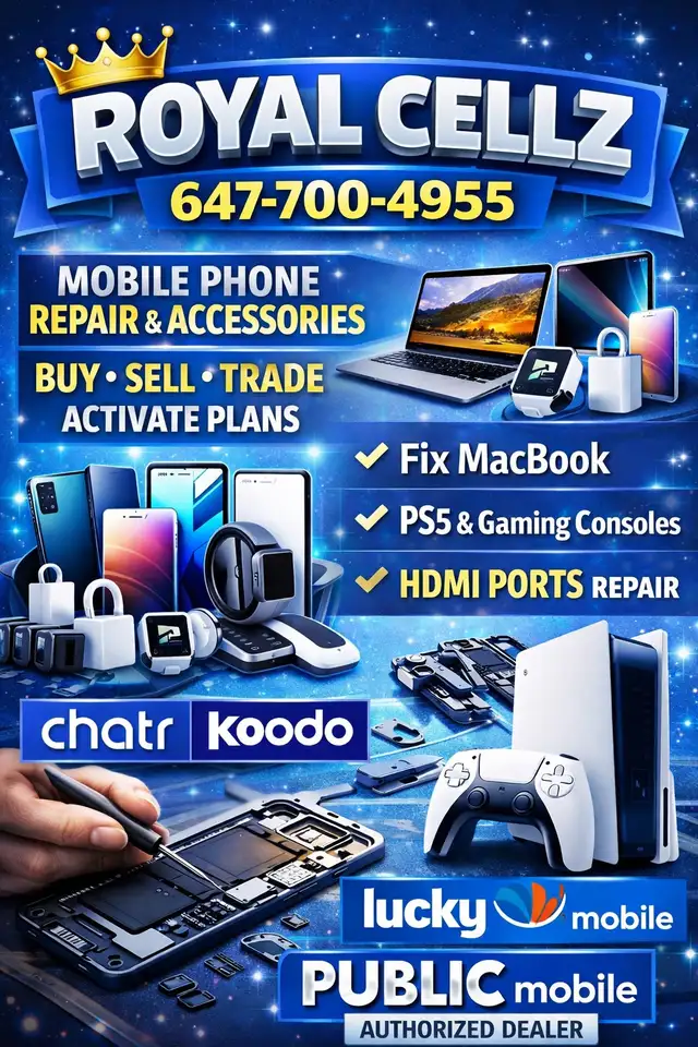 Whether your device has a cracked screen, battery problem, or motherboard issue, ROYAL CELLZ is your one-stop solution for fast, reliable, and affordable repairs in Mississauga.