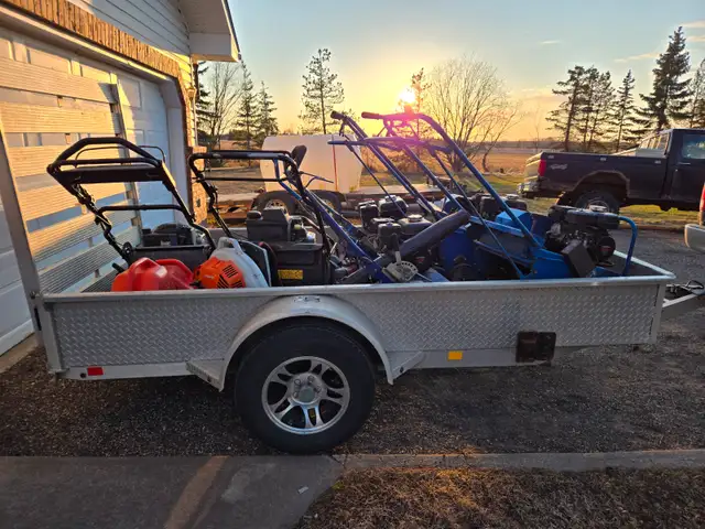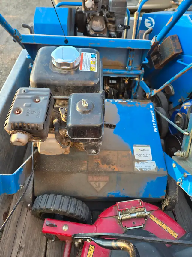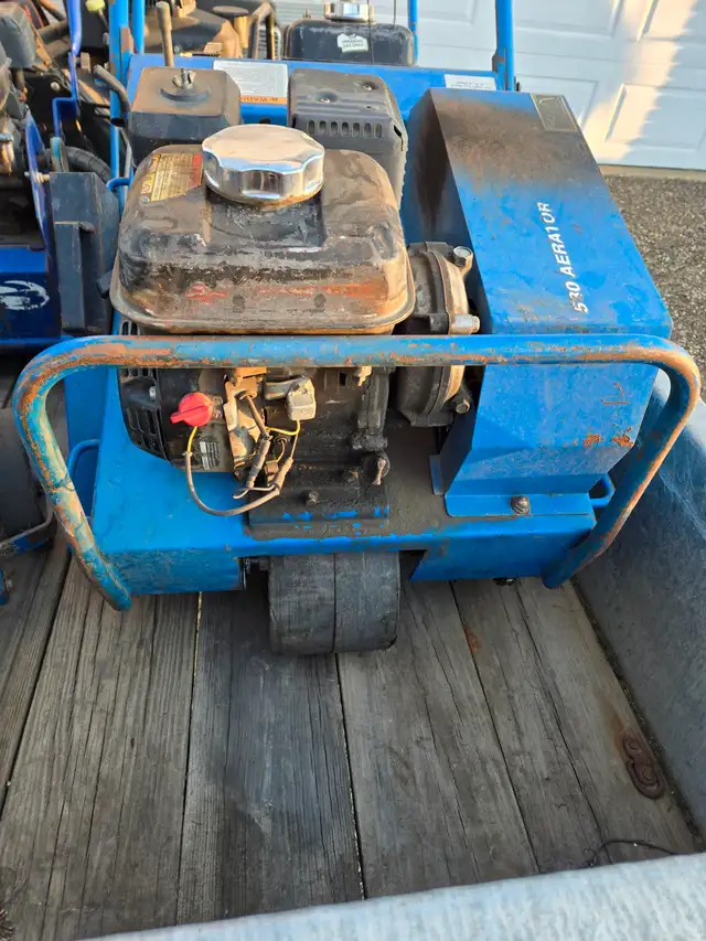 Equipment includes an aluminum trailer, several bluebird power rakes, several bluebird areators, ariens power edger, 2 toro 30 inch mowers, back pack blower, trimmer and a customer list with over 50 spring clean up costumers.