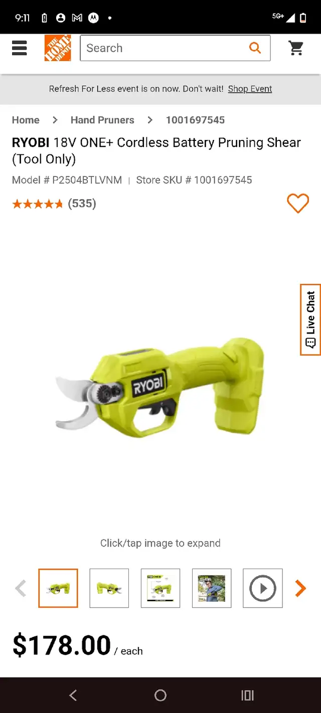 RYOBI Pruning shears Brand New Sealed in box. Perfect for your Spring Clean up needs!