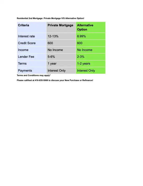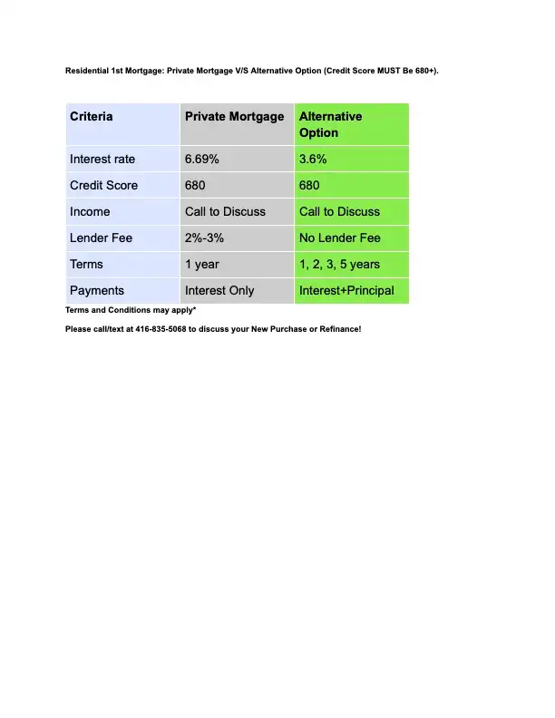 1. Private 1st Mortgage: $528,000 at 6.99% 2% Lender Fee
