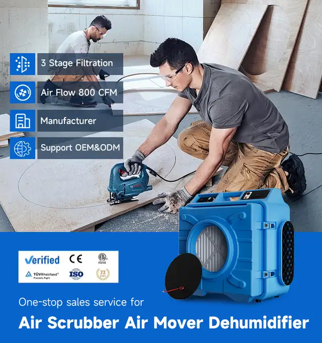 800CFM Air Scrubber ETL 1/4HP Air Purifier Fan Blower Commercial Blower Floor Carpet Dryer for Water Repair