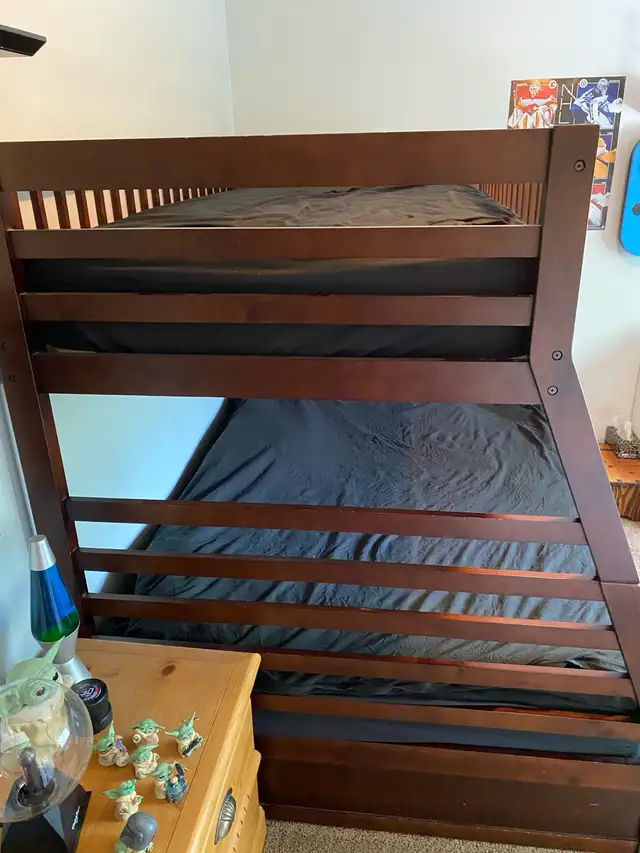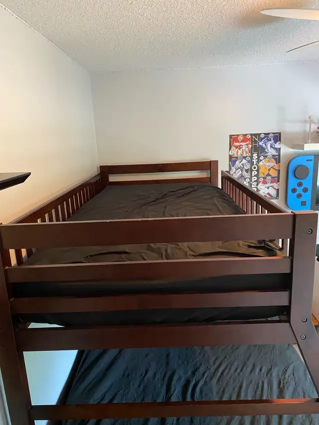 Wooden bunk bed.