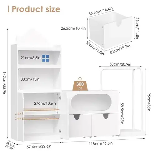 Multifunctional Design: It's more than just a bookshelf; it can store books, hold toys in the drawers, and even hang clothes.