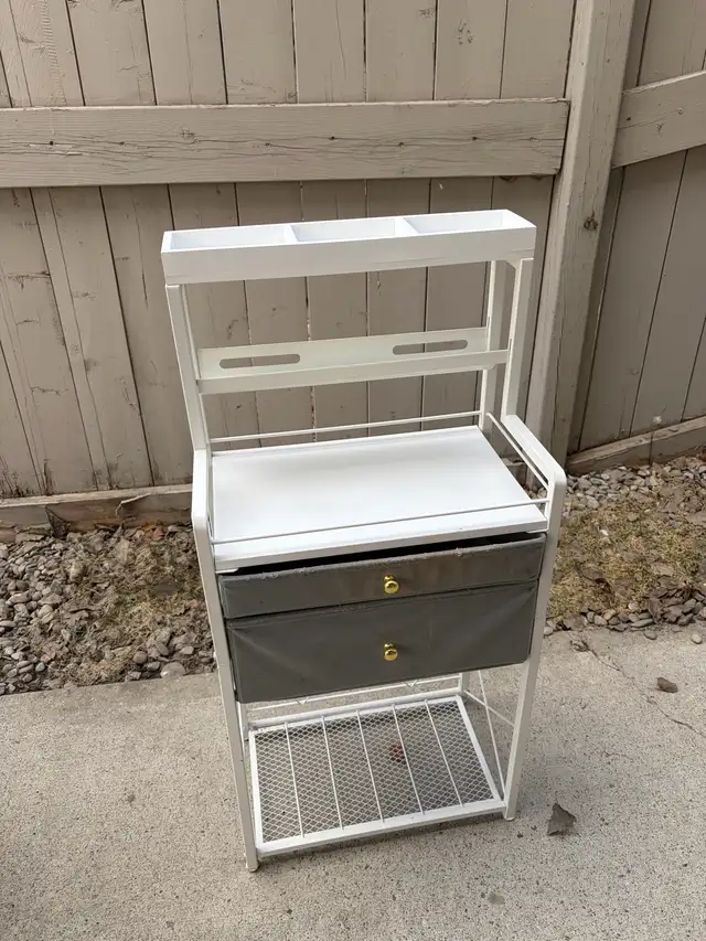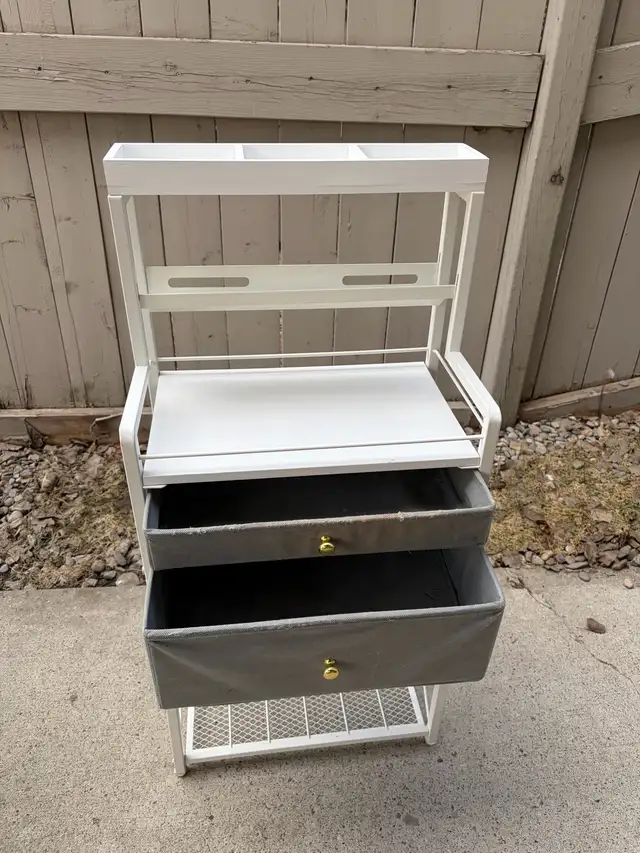Free makeup stand. Has some foundation stains on the top drawer as seen but nothing is broken. Moving and don't have the space.