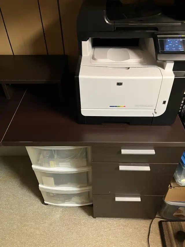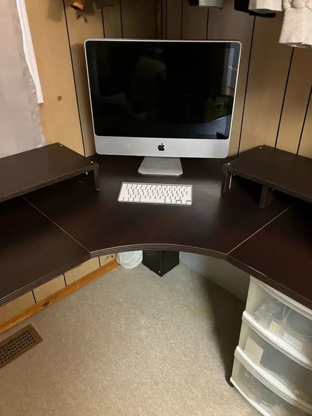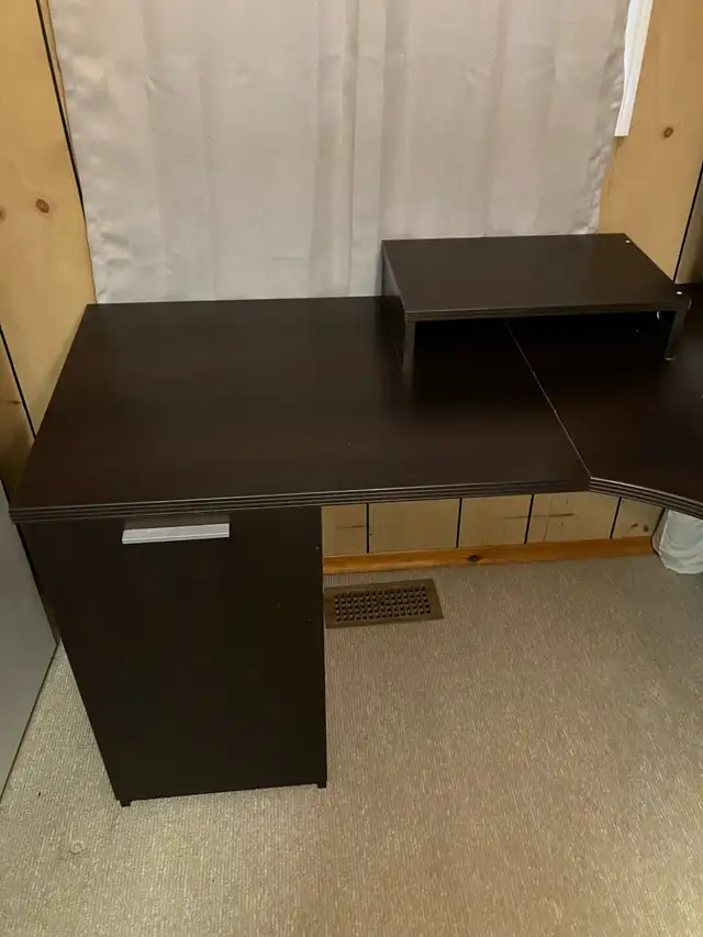 Large computer desk. There is a shelf for under the monitor but it was too high for me. For faster replies text or call 705-787-6516