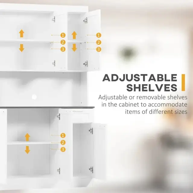 Brand New 71" Kitchen Pantry Cabinet, Storage Buffet with Hutch, Adjustable Shelves for Living Room, High Gloss White