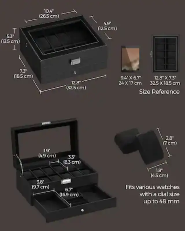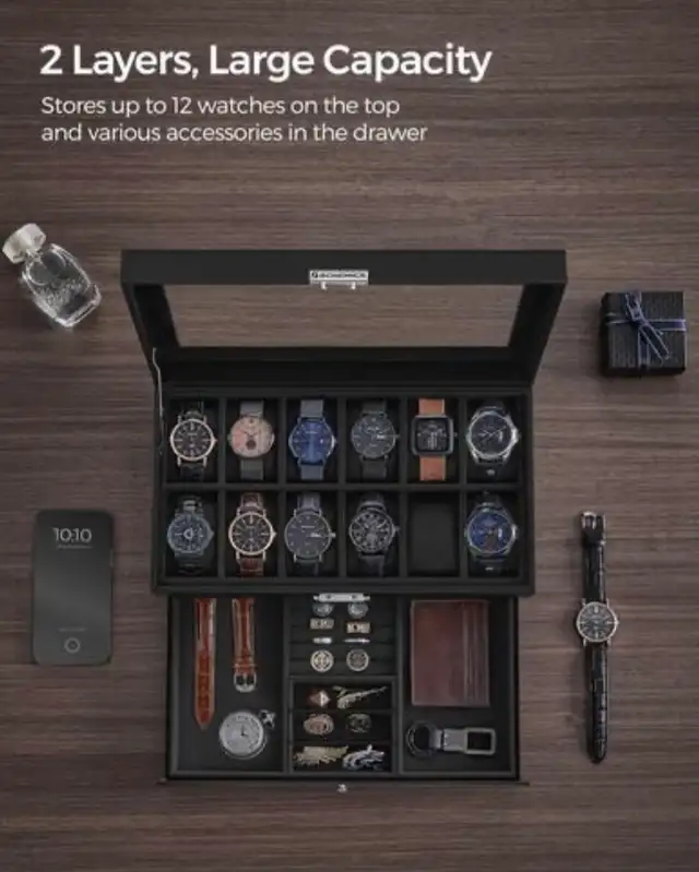 • ⌚ 12 Watch Storage Slots – Perfect for organizing and displaying your collection