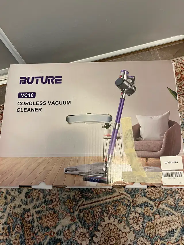 Buture VC10 Cordless Stick bagless 400W Vac. Please no email or texts. Interested call Lori 204-250-4439. (2 1/2 years old vac. Handheld weighs 1 lb. Gently used very good condition. Non smoking home. CASH, PICK UP ONLY.