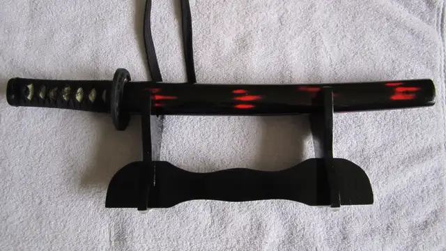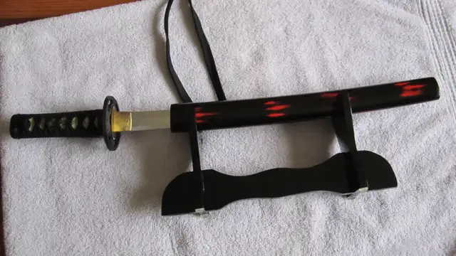 JAPANESE TANTO SWORD WITH SCABBARD ON DISPLAY STAND