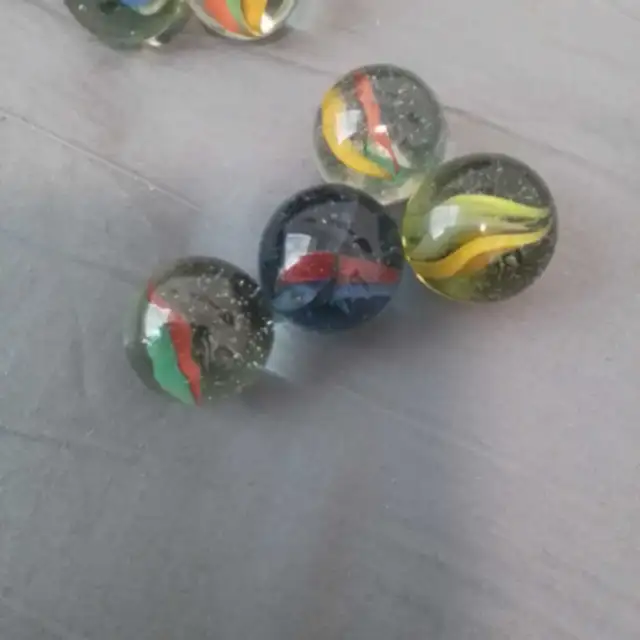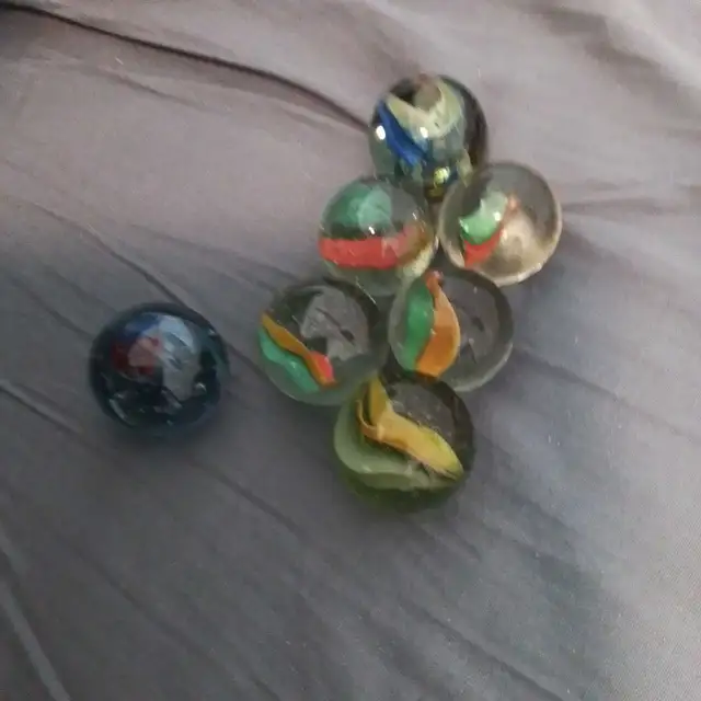 Lot of 7 vintage 1960's marbles...(4 large size 1.25 inches & 3 1.0 inch). Some very minor flaws..Excellent condition. Cats Eye marbles.