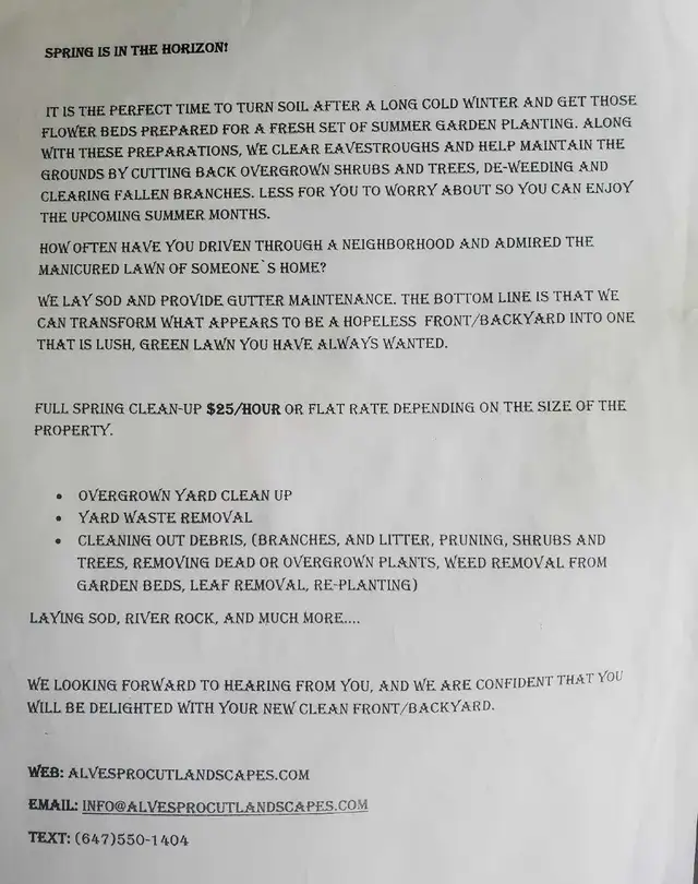 It is the perfect time to turn soil around after a long harsh winter, and get those flower beds prepared for a fresh summer garding planting. Along with these preparations, we clear eavesthroughs and help maintain the grounds by cutting back overgrown shrubs and trees, de-weedibg and clearing fallen branches.