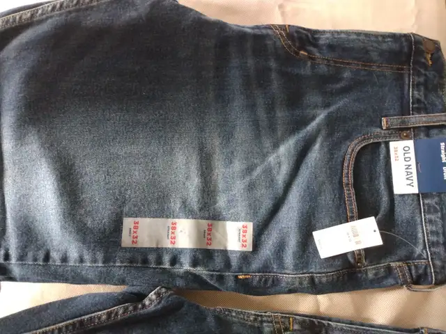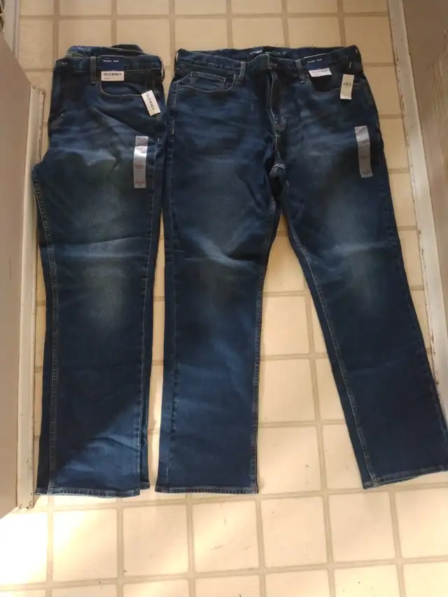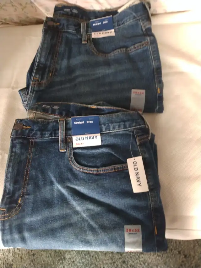 New 2 pairs of Straight Leg 38" waist 32" length, Old Navy Jeans, brand new tags are on them. , purchased a long time ago & can't return them, $30.00 for both , located in Milton, (416)316-1953