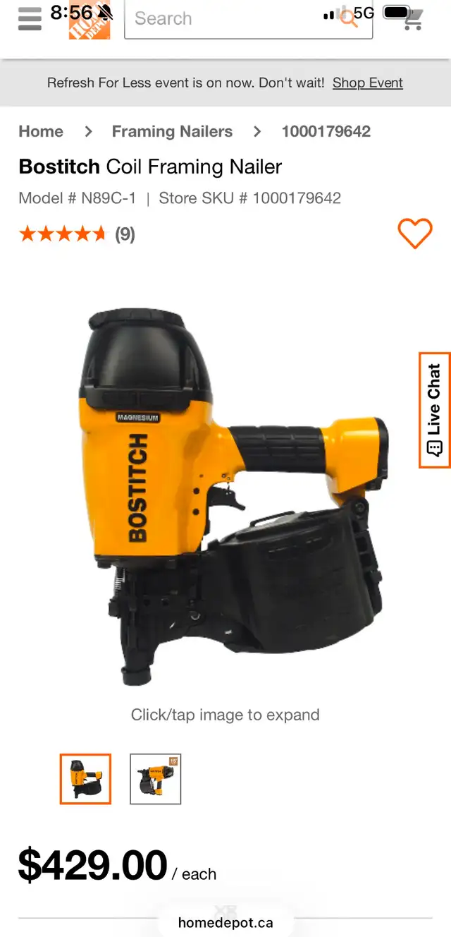 Selling a 15 degree coil nailer used a few times to install siding hasn't been used since
