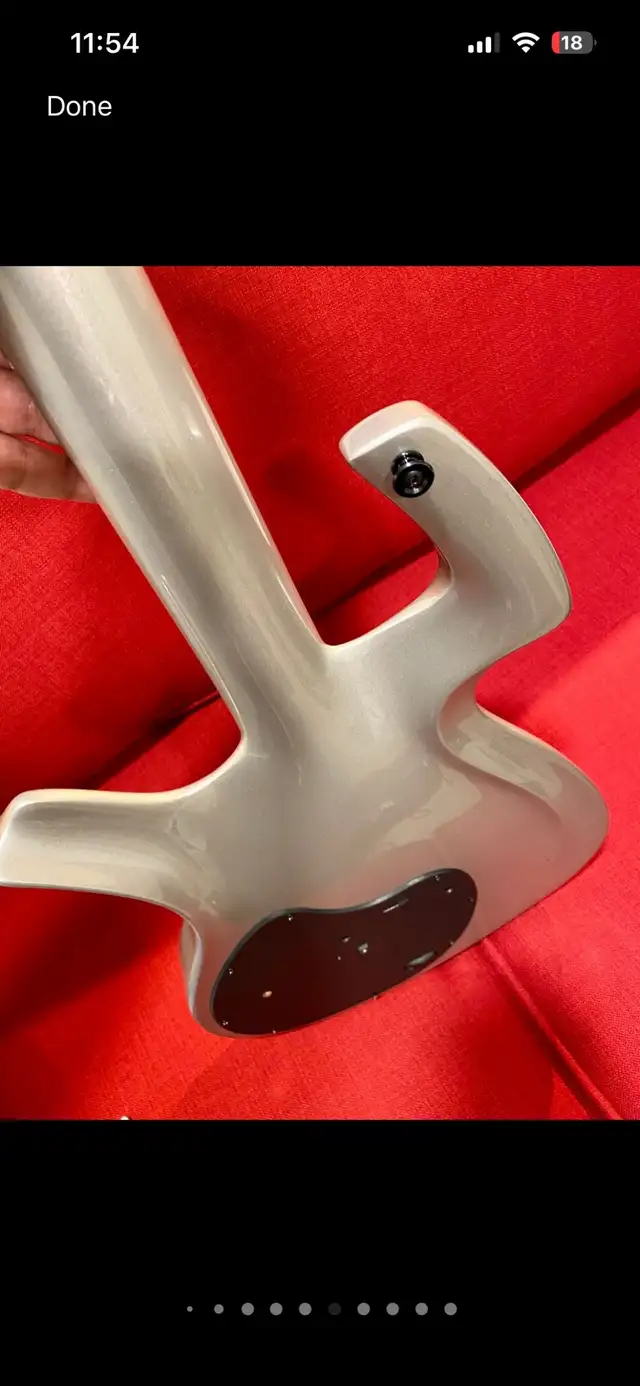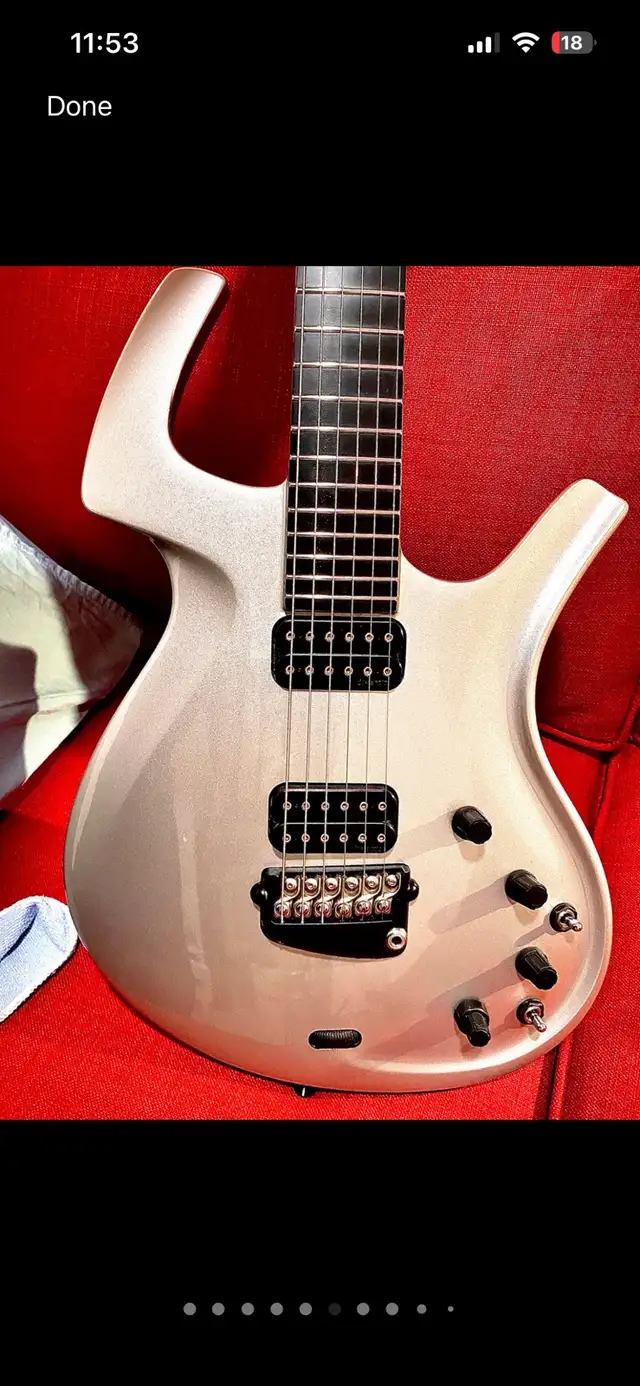 The best condition Parker Fly of this vintage, in this condition, with original hard shell case here. “Pre-refined" era Parker Fly, built in 1999. Built while Ken Parker still owned and was running the company, it has all the original details unique to this incredible design, including the face-mounted tremolo tension wheel, stereo output control, ribbon wiring, the original Fishman piezoelectric acoustic pickup system and DiMarzio humbuckers. The Fly has a solid body painted a beautiful metallic silver, along with a basswood neck, carbon fiber fretboard and body and neck reinforcements, stainless steel frets, Fishman piezo system, and Parker's unique cast aluminum vibrato bridge. Everything is in perfect working order, stays in tune great. Comes with mint original case and all the tools etc needed.