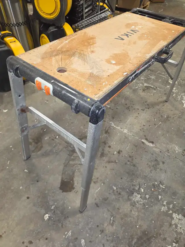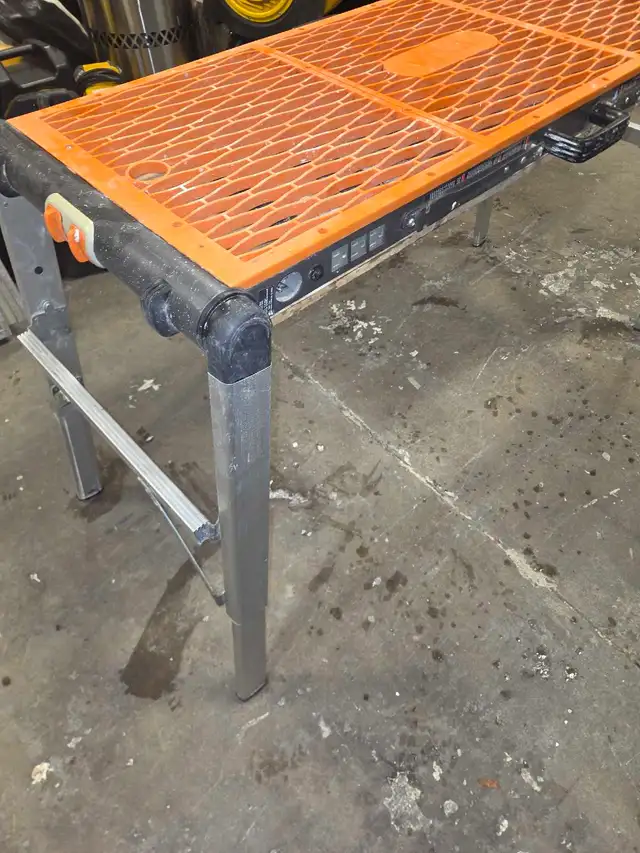 Vika 3 in 1 work table, bench, stand with adjustable legs, and outlet $80