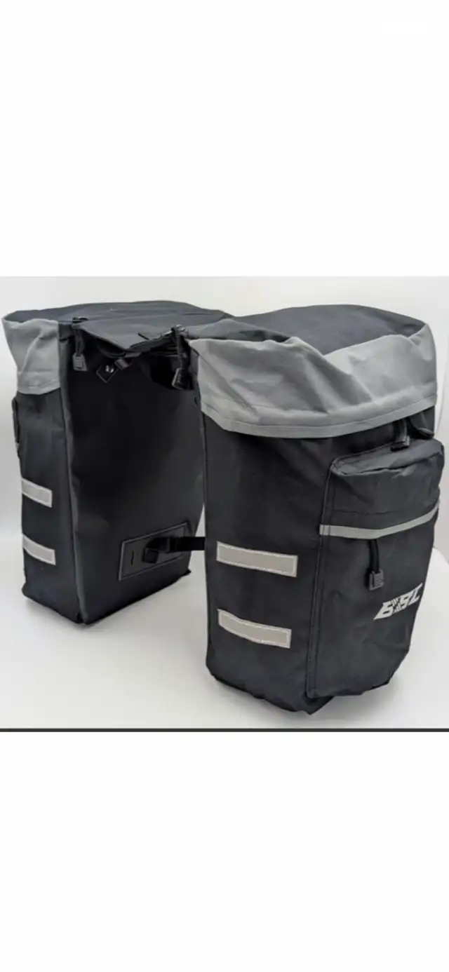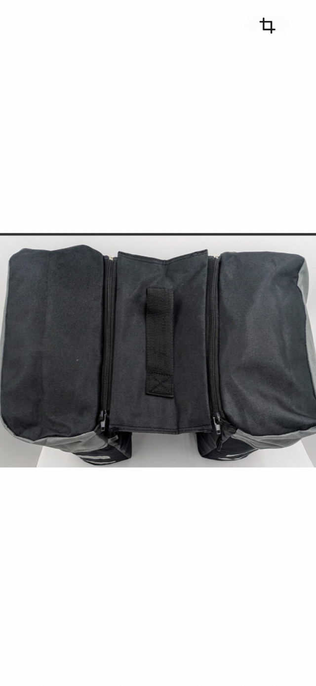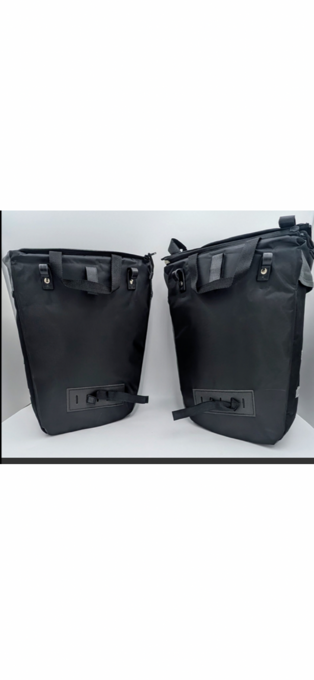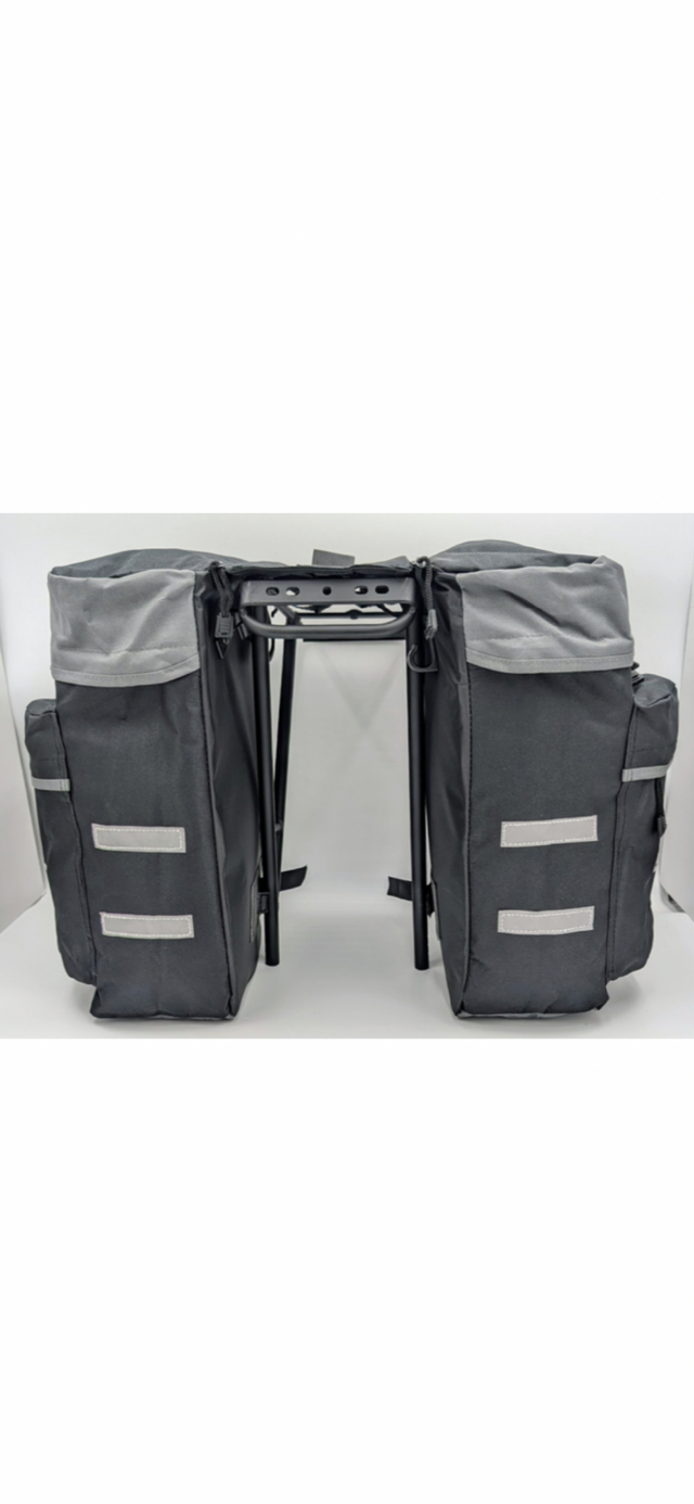 These stylish black and grey pannier saddle bags offer lots of storage with zippered pockets, and easy installation with 4 clip on hooks and Velcro straps.