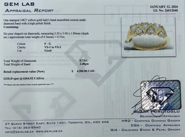 14KT Yellow Gold 0.73ct. 6 Pear Shape Diamond Band $1575