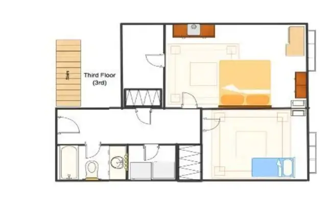 3rd Floor; 4 Pc Bathroom, Separate Laundry Room with Full-Size Washer & Dryer, 2 Large Bedrooms with A Spacious Closet & A Walk-In Closet.