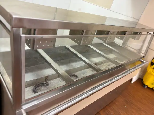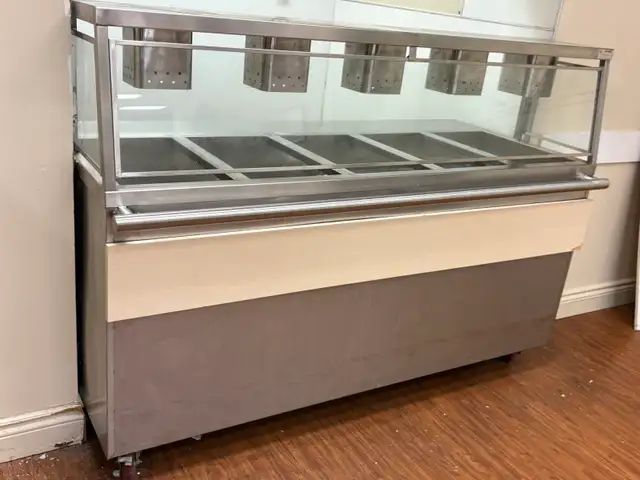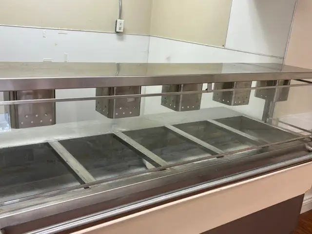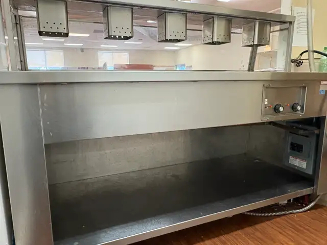 • Overhead heat lamps for consistent food warmth