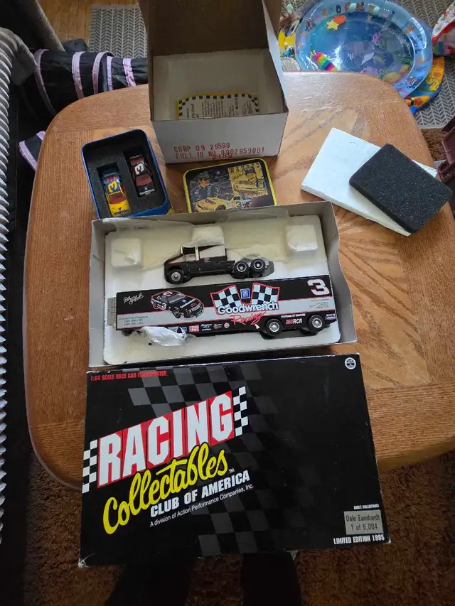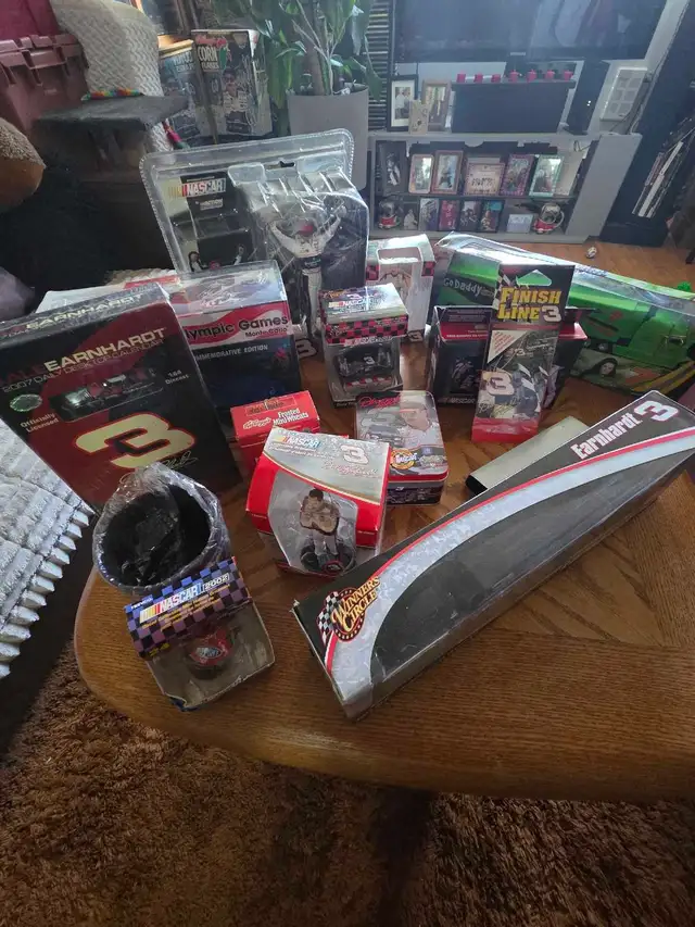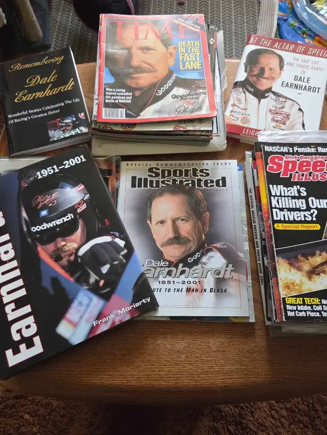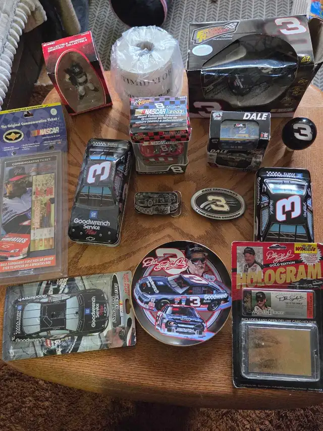 I'm offering a diverse collection of Dale Earnhardt and NASCAR memorabilia, perfect for any racing enthusiast. This lot includes diecast cars, unopened calendars, corn flakes cereal, plate, #3 gear shift lever, danica patrick die cast hauler, playing cards, collector cards commemorative books, and various collectibles. All items are in used condition, with some wear, which adds to their vintage appeal. Don't miss out on this opportunity to own a piece of NASCAR history! If the ad's up, it's still available, ready to zoom into your collection! Text 403-463-6568 $275.00 NO SILLY OFFERS OR TRADES. SERIOUS ENQUIRIES ONLY