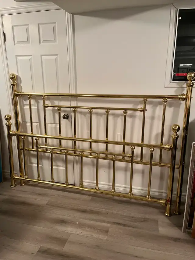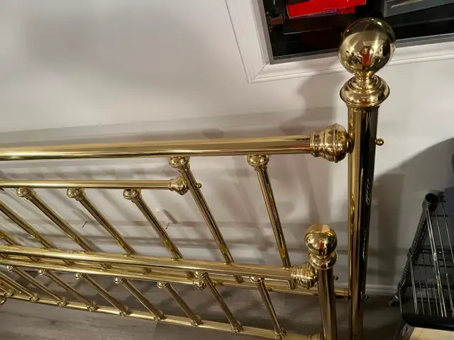 King size brass headboard, footboard and rails in excellent condition. Asking $300.00 or make an offer. Cash only. Call or text 548-288-0588