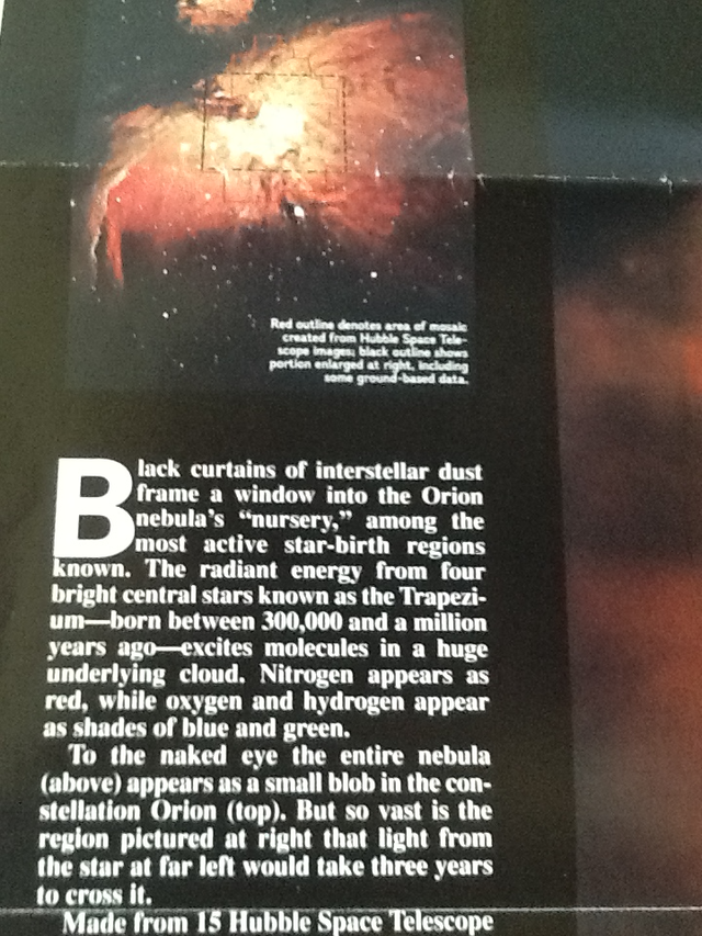 • Side 1: The map features a full-color picture of the Orion Nebula.