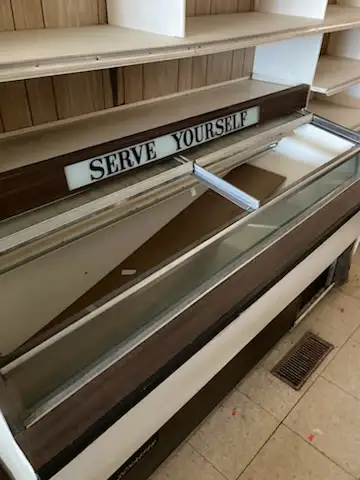 Coolers, freezers and shelving that remain in a previously operated grocery store. Will take offers on all or