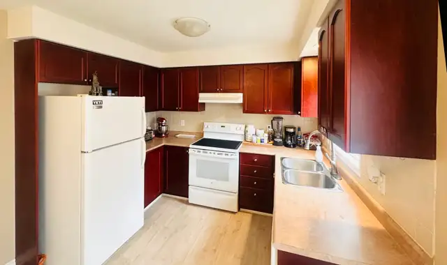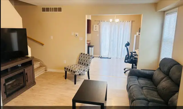 Quiet & spacious family home , 3 beds room ,1.5 washroom. Finished basement .one car garage and one car parking on driveway plus public parking .Well keeled house end unit with big backyard , located in heart of Kitchener's Country Hills West/Laurentian area, easy access to Waterloo, Cambridge, or HWY 401, short distance to ION light rail and GRT bus routes.walking distance to Forest Glen Plaza , 3min drove to the Laurentian Mall. public schools and Catholic Schools near by.