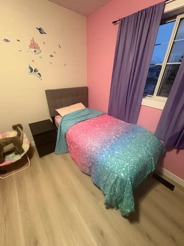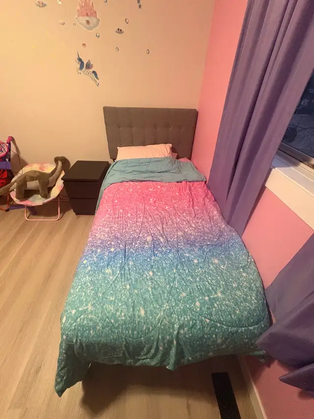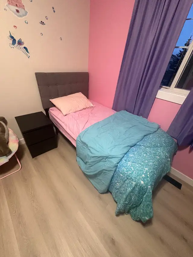 Great condition single bed comes with everything in the title plus mattress protector and extra sheets ect if you want them…text 403.966.4663