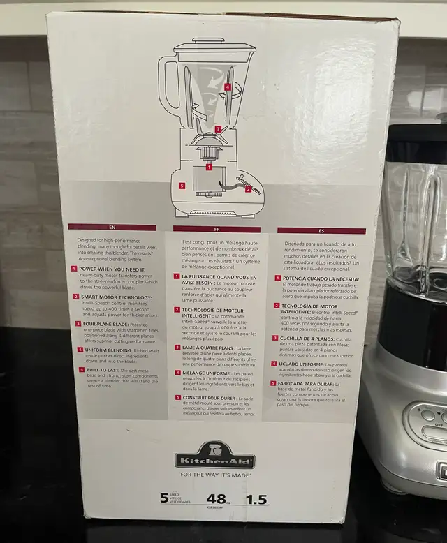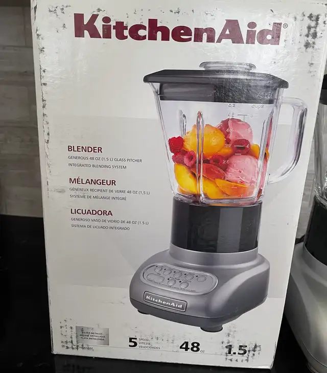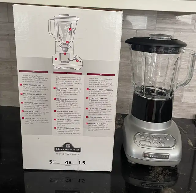 Brand new KitchenAid 5-Speed Blender, never used and still in the original box. High-quality blender perfect for smoothies, soups, sauces, and everyday kitchen use.