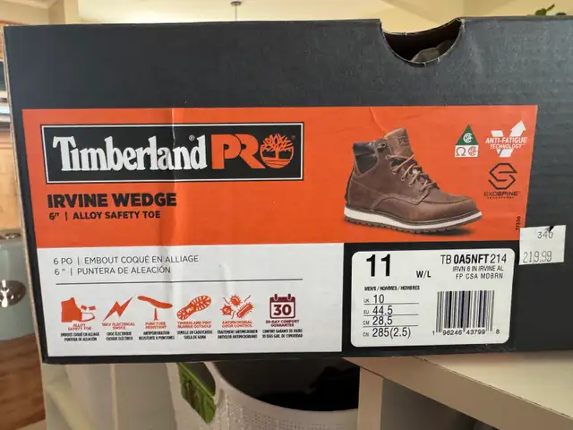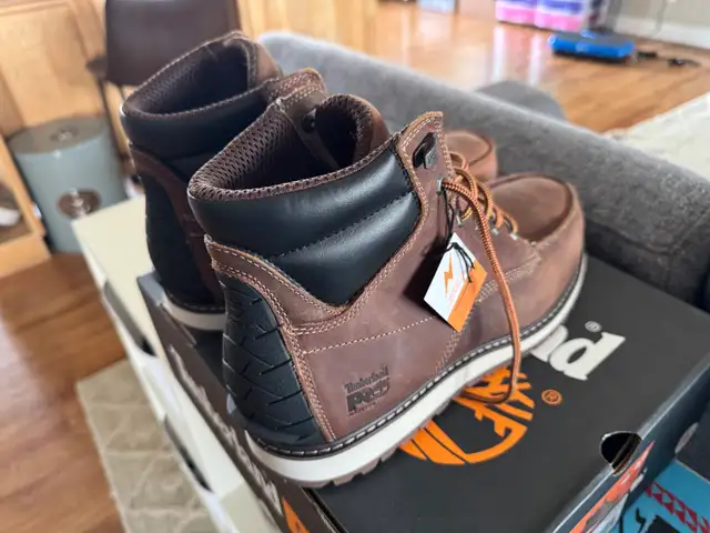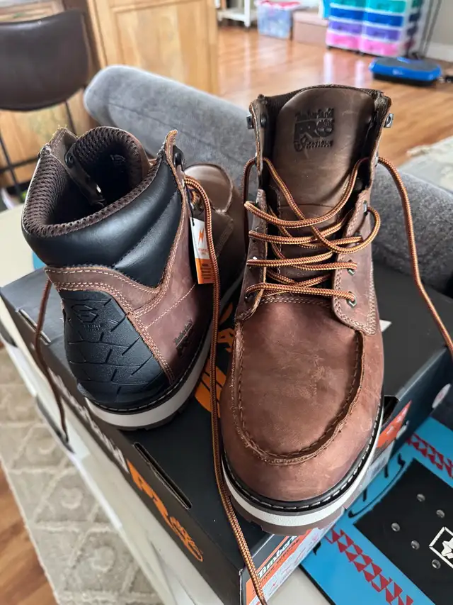Brand new in box. Size 11. Timberland Pro steel-toe work boots. Call or text Bryan with interest (519) 500-5052.