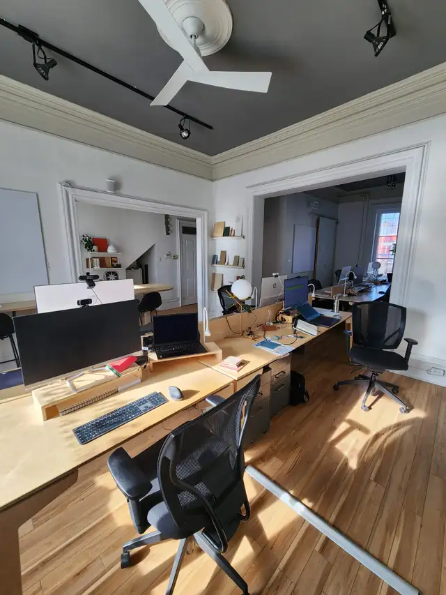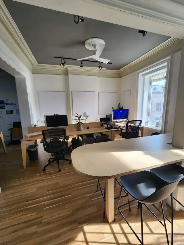 Nice commercial space for rent on the 2nd floor of Victorian style building. 875 sq feet. Sunny side. Available July 1st or earlier. Ideal for office. Owner's phone: (514) 550-9162