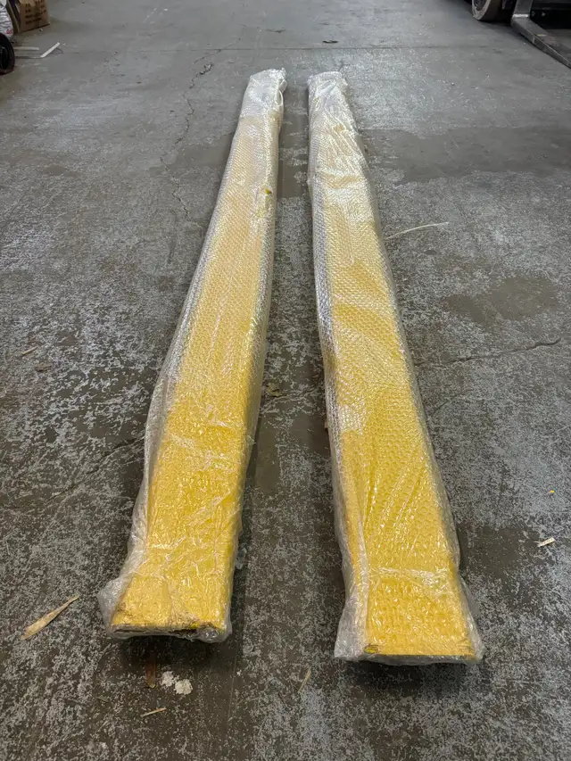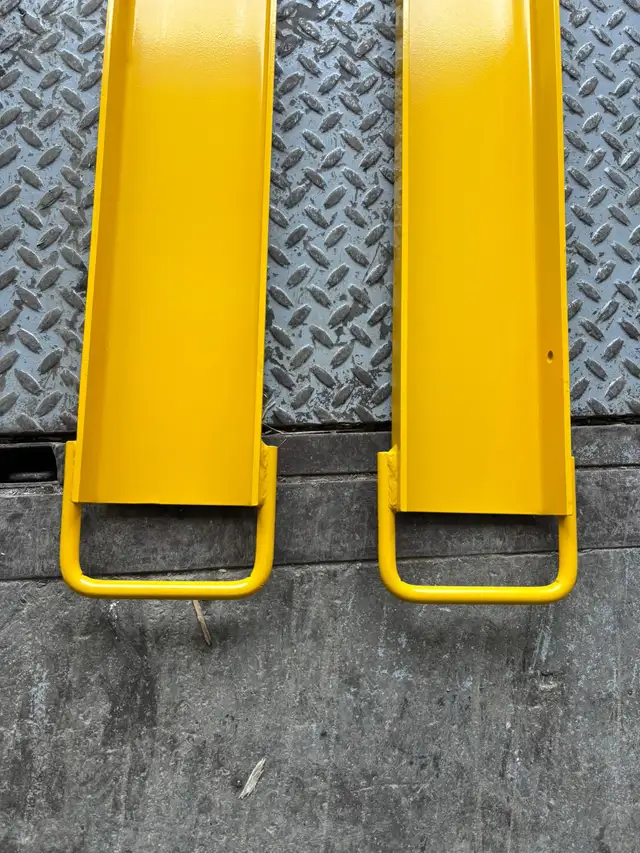 Different sizes of forklift extensions are available in stock.