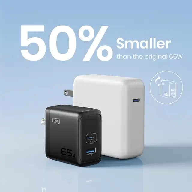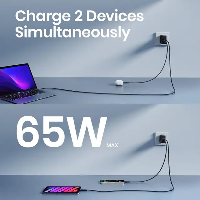 Compact & Space-Saving: We've designed this charger to be 50% smaller than the old 65W single-port USB-C charger. It fits perfectly in any space, ensuring you can always stay charged without taking up too much room