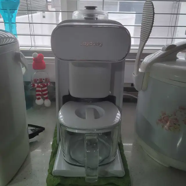Joyoung soy milk maker in white. It has a glass carafe for the finished product. Easy to use for fresh soy milk at home! Please text if interested thanks 780-937-1978
