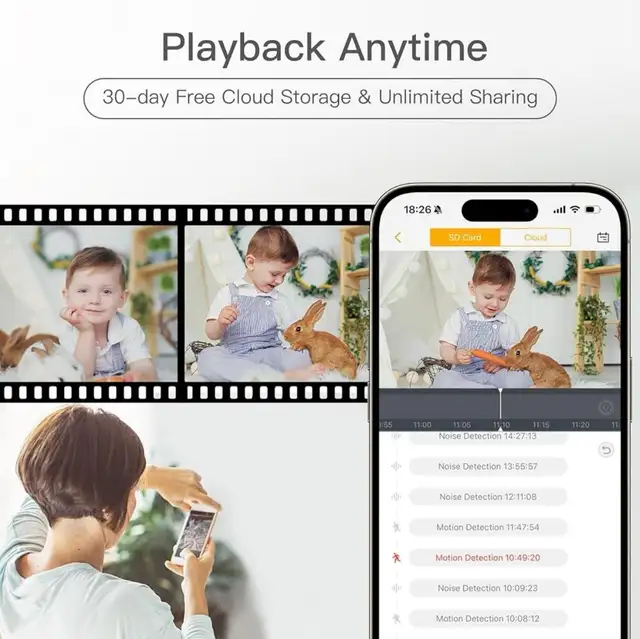 • Motion & Noise Detection – Adjustable sensitivity with alerts