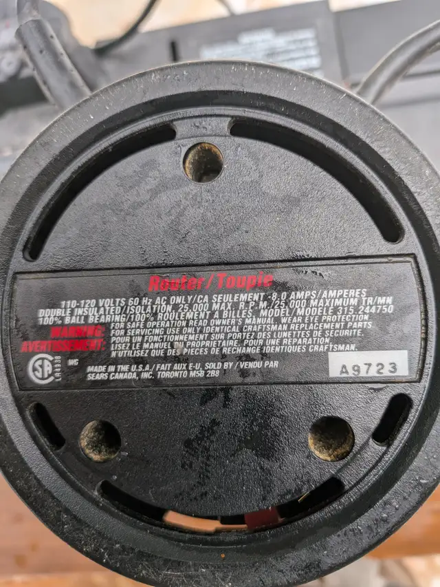 Craftsman router and router table for sale. Table has an adjustable out-feed option and a hookup for a dust collector/vacuum. I also have several inserts for different size bits. $30 a piece or both for $50. Call or text Chris (705) 457-7015. Pickup near Haliburton.
