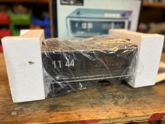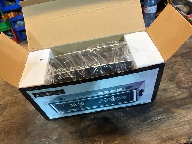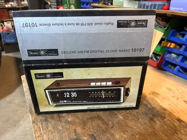Selling a vintage Sears AM/FM Digital Clock Radio (Model 10197) in NEW OLD STOCK condition.