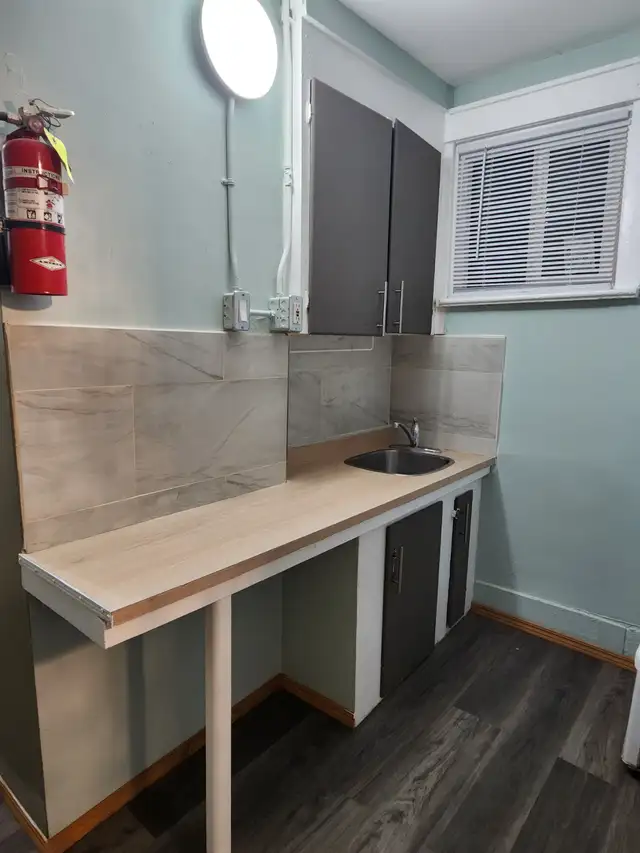 Gorgeous living room with Chandelier Lighting, kitchen & washroom Titles. high efficient windows, vinyl flooring and every light is LED without blubs suitable for single or couple occupancy only. Huge windows including new windows curtains , Fridge, stove, Fire extinguisher & Alarm.
