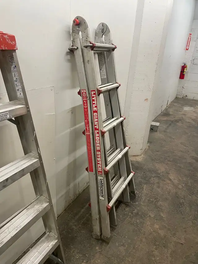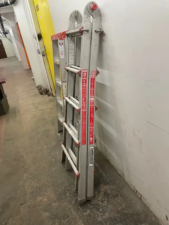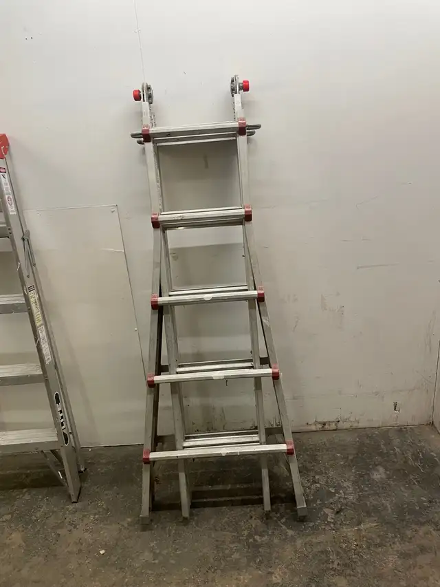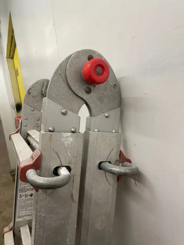 This ladder extends to 12 feet it is in very good condition it's really old I've had it for a long time since the 80s some people say that the adjustment knobs are broken but that's the way they came when I bought it brand new so nothing is broken. It works great I'm asking $125 or best offer for this ladder. I have some other ladders for sale , I have a lot of things for sale. Please see my other ads please contact Tony at 204-890-6363 text for best results. Thank you.