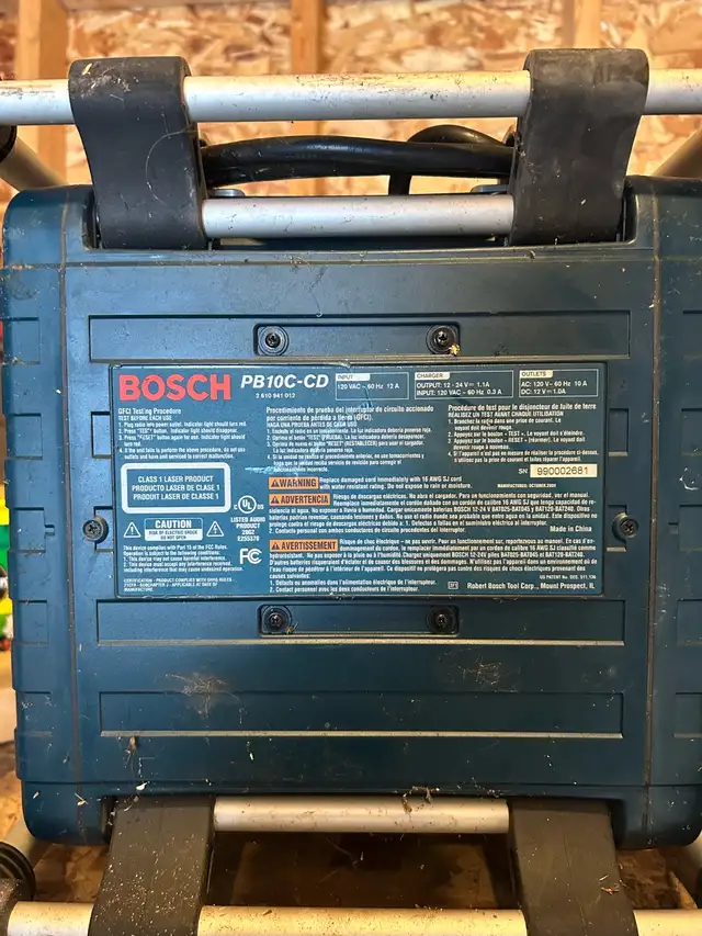 This used Bosch Power Box PB10-CD is a jobsite radio and power station, offering both entertainment and utility on the go. It has a functional design with a protective roll cage, making it durable for tough environments. The unit includes a CD player, radio, and multiple power outlets. Used, but it's in great working condition. .