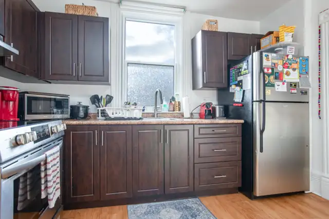 72 B Waterloo Avenue a recently renovated 4 bedroom & 2 bathroom apartment available May 1st, 2026. The building is unique and has a variety of rooms with character and modern finishes! Great location for students, only a 10 minute walk downtown! The bus stop on Gordon St (direct to the university) is only a 5 minute walk, and the university is a 25 min walk. All tenants in the building are U of G students. The Landlord takes care of all building and property maintenance. Prior to move in, the apartment will be thoroughly cleaned and painted making it feel brand new ! $3,600 per month ($900 per room) or split it up however you see fit. Water and 1 parking spot included. Hydro, gas, and wifi is the responsibility of the tenant. Additional parking spots are available. Shared pay per use laundry in building. High efficiency furnace, high efficiency A/C, and high efficiency hot water tank, and water softener all installed in 2020. New windows in 2021.