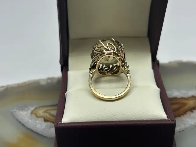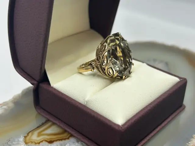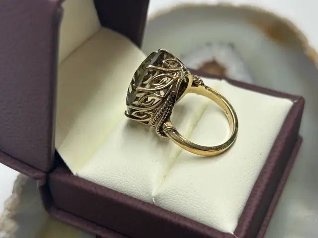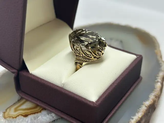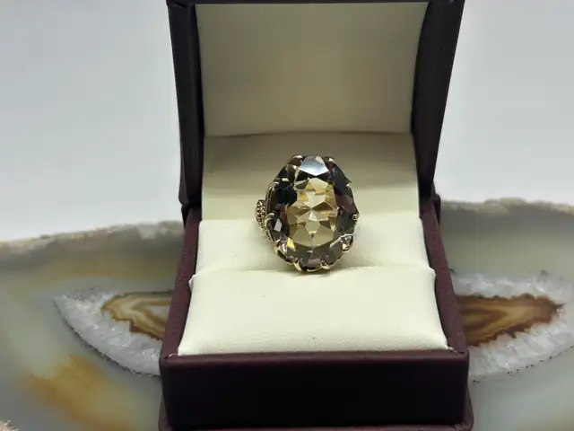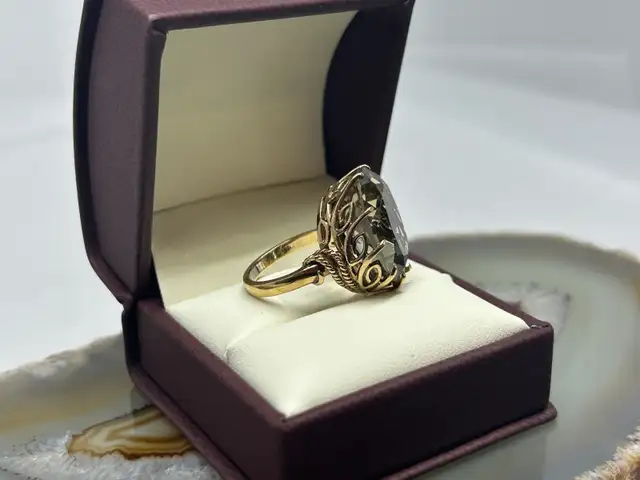9 gram Vintage style 10k yellow gold Oval cut Smokey Quartz Ring