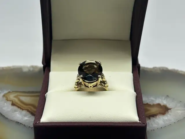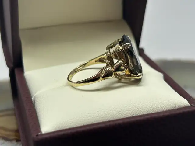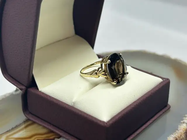 9 gram Vintage style 10k yellow gold Oval cut Smokey Quartz Ring